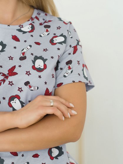 • серый/пингвины красный (серый/принт "пингвины")/54