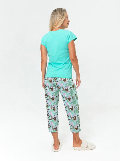 Оптовая продажа. Пижама женская из трикотажного полотна кулирная гладь. Футболка прямая, без рукавов, со спущенными плечевыми швами, круглым вырезом горловины. Бриджи прямые, слегка зауженные к низу, пояс цельнокроеный с эластичной тесьмой.