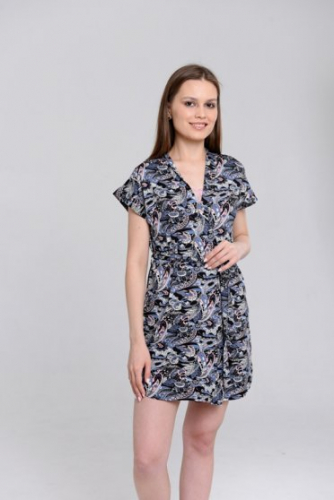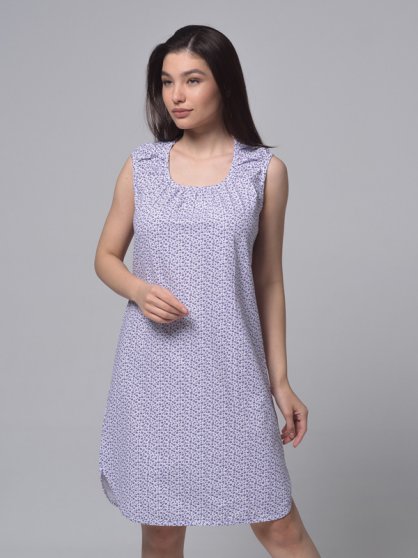 Оптовая продажа. Сорочка женская на широких бретелях, сборка по линии горловины, фигурный низ изделия, принт в ассорименте.