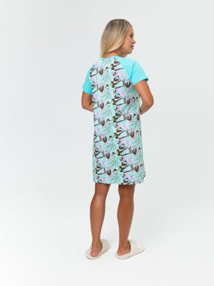Оптовая продажа. Сорочка женская из трикотажного полотна, прямая, свободного кроя, длиной ниже колена, со спущенными плечевыми швами, круглой горловиной, декорирована пуговками.