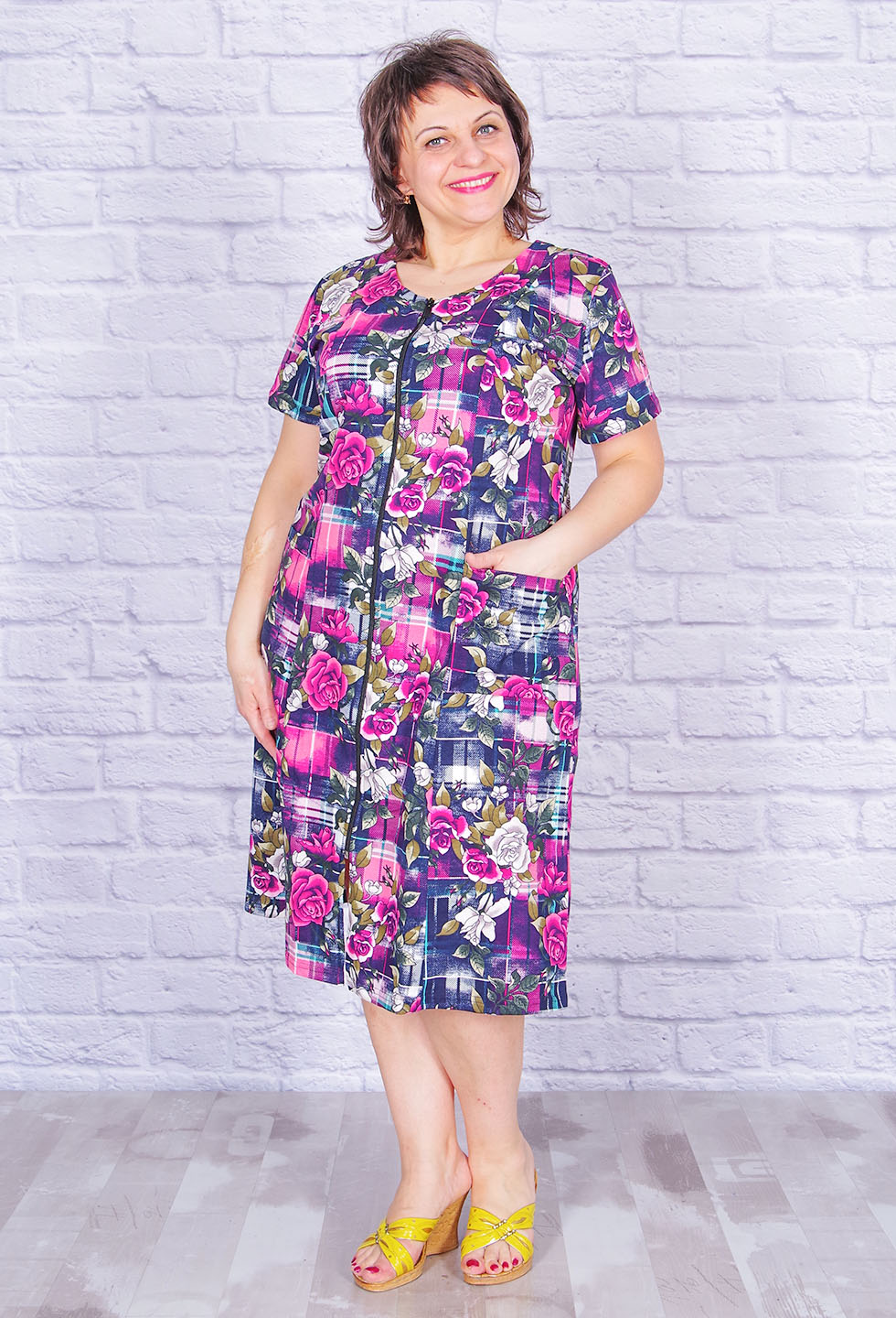 Хлопковый домашний халат на молнии с удобными накладными карманами.