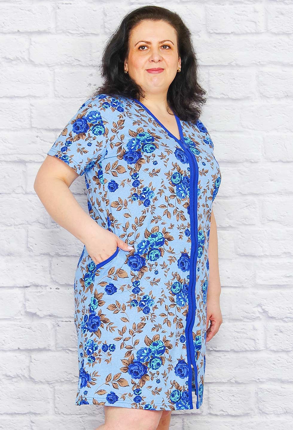 Легкий халатик на молнии, с боковыми карманами из качественного кулирного полотна.
