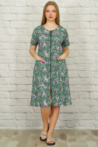 Женский хлопковый халат на молнии. Модель прямого кроя с удобными накладными карманами, рукав втачной.
