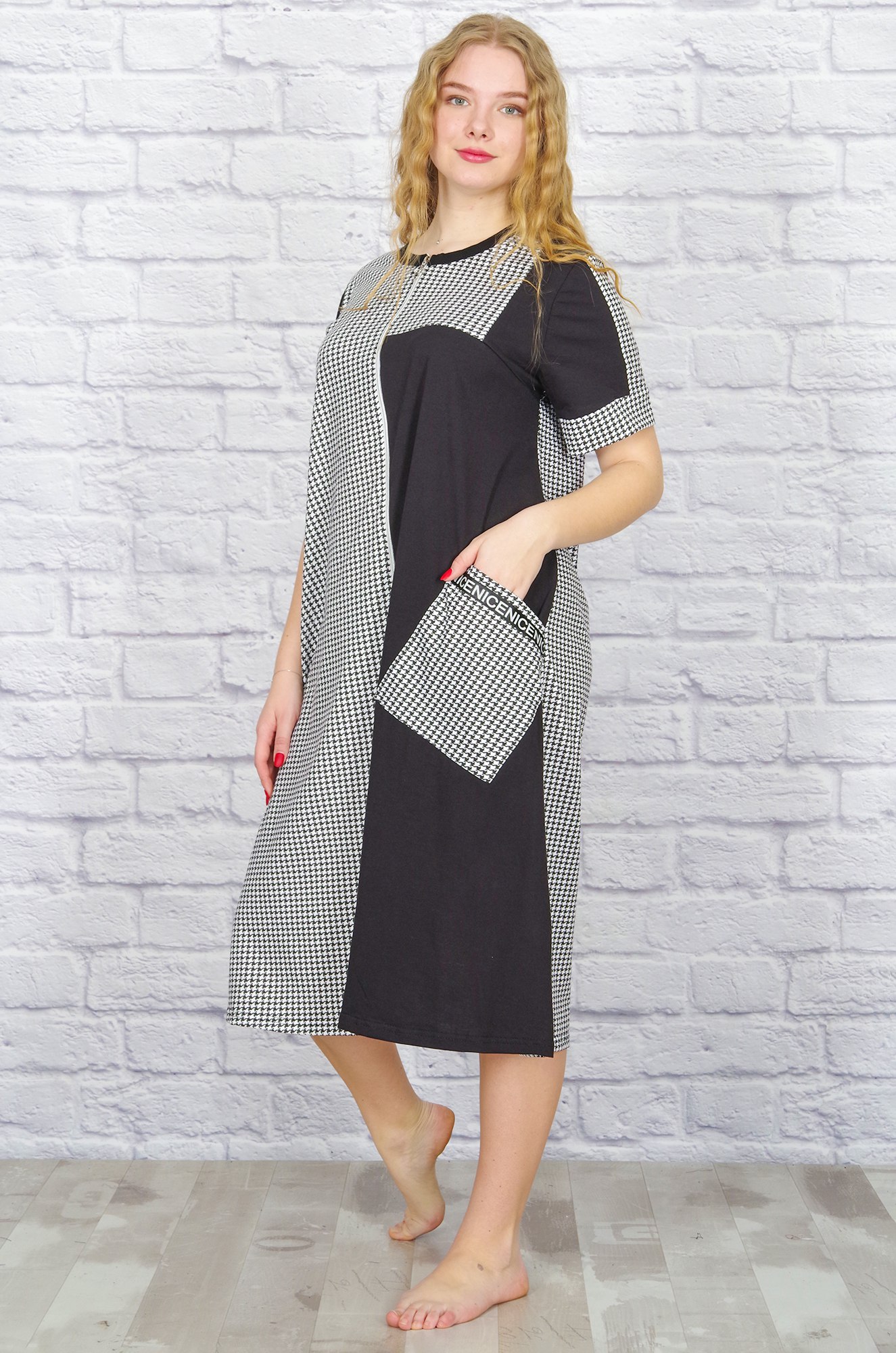 Домашний халат для женщин должен быть не только удобным, но и красивым! И эти качества есть в этой модели. Стильный, современный, оригинально скомбинированный хлопковый халат на молнии трапециевидного кроя. На полочке большой накладной карман, рукав с манжетом. Ткань кулирка - мягкая, приятная к телу.