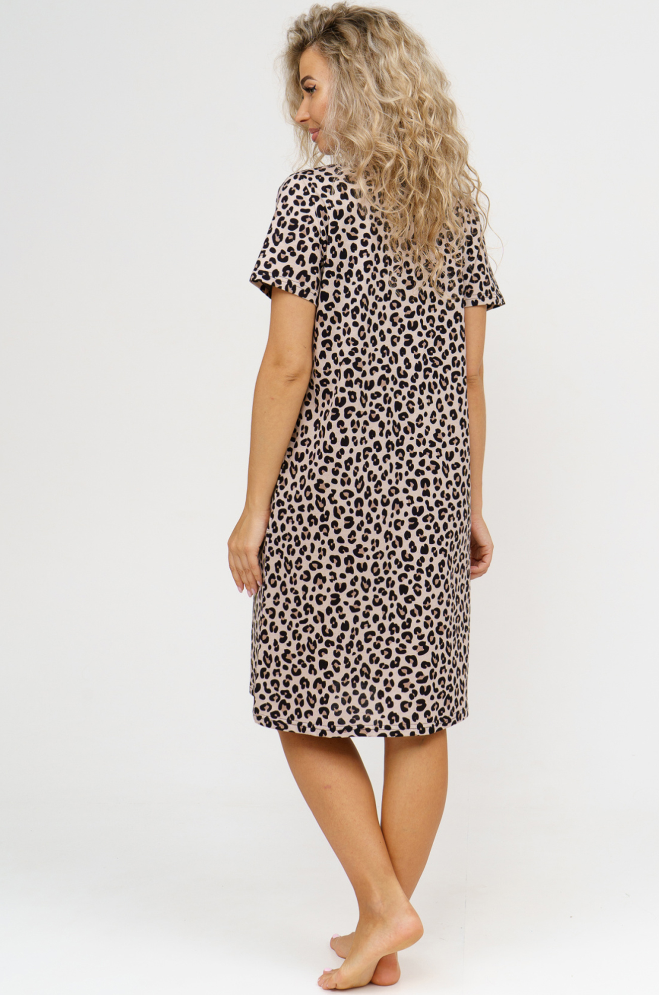 Модель прямая, средней длины, с коротким рукавом и удобными накладными карманами.