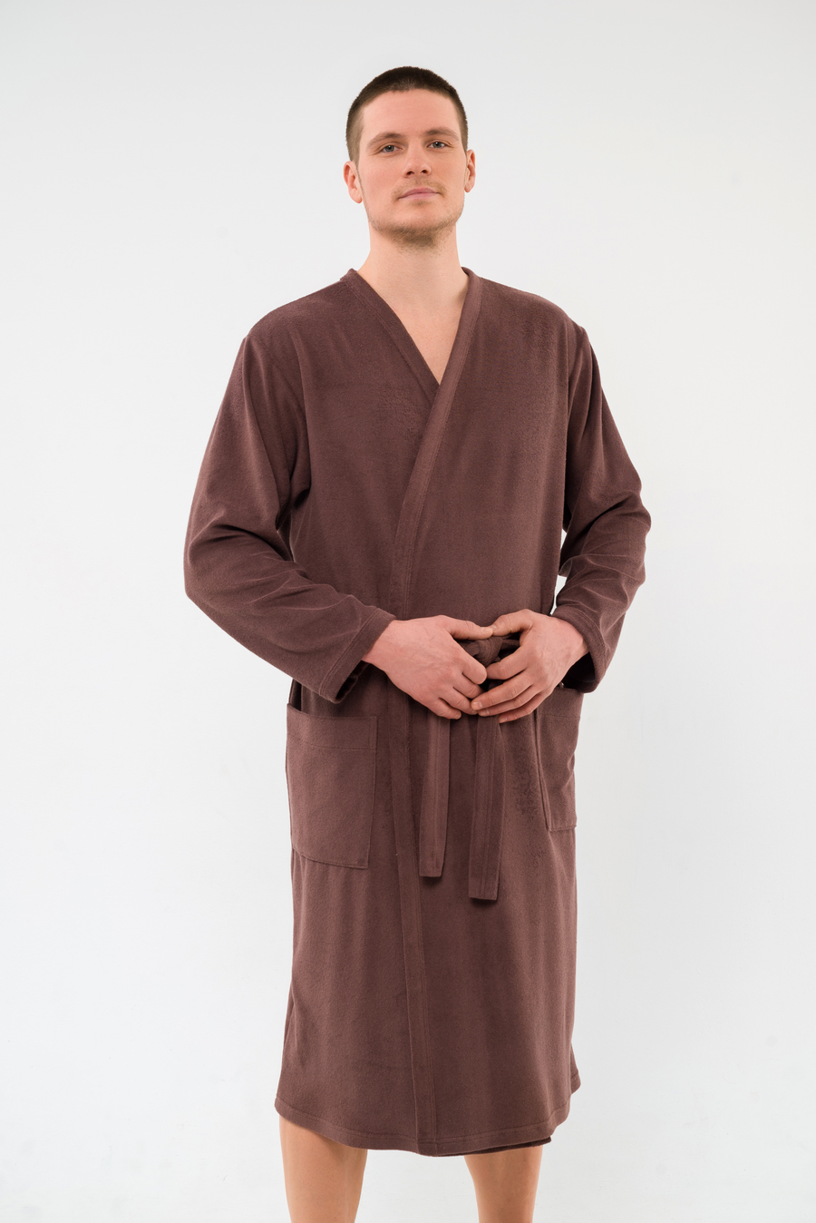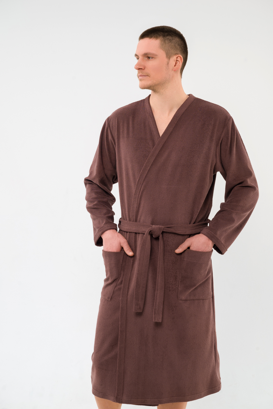 Халат мужской из махры Ренат темно-коричневый макси