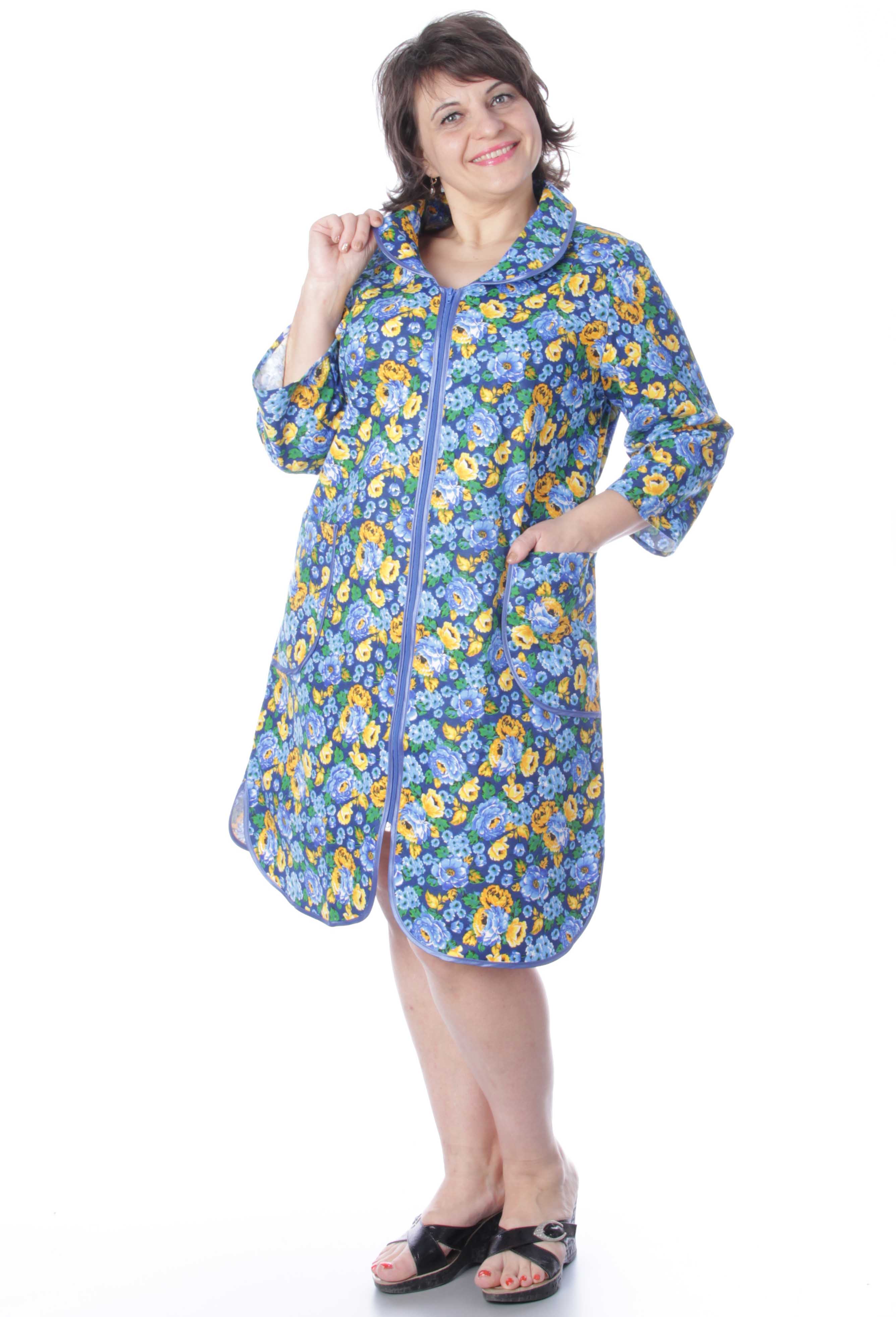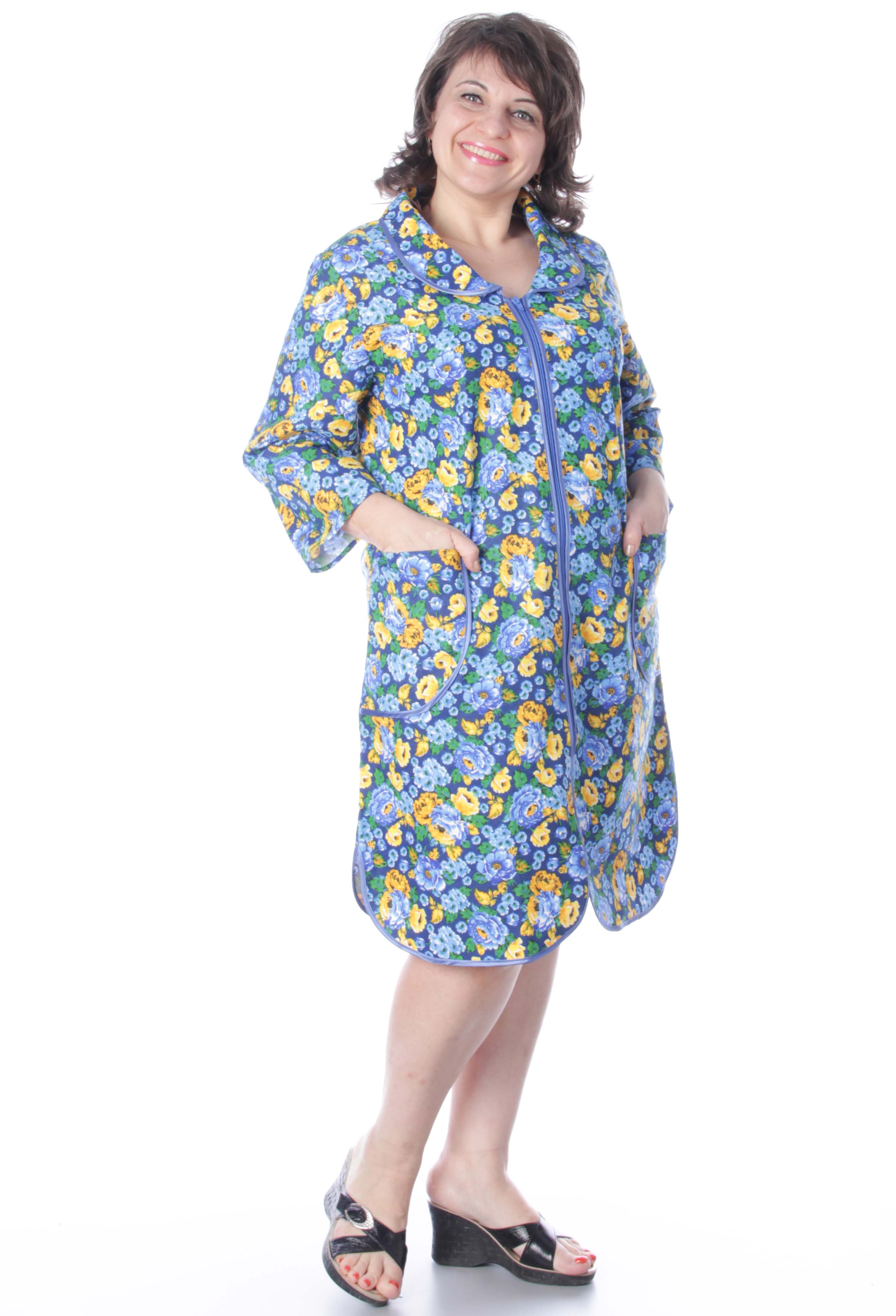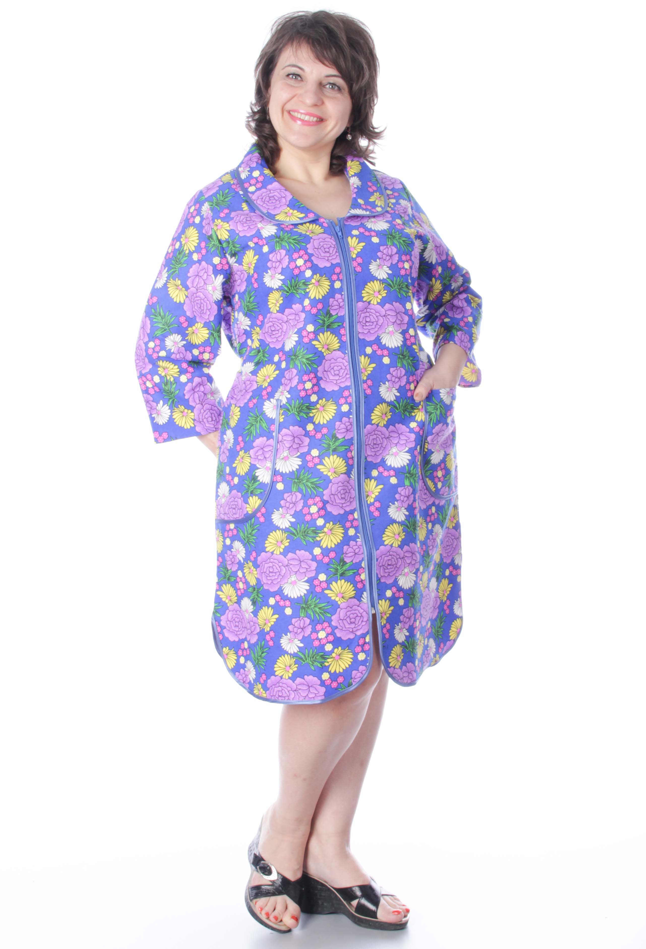 Фланелевый халатик на молнии с отложным воротничком и карманами
