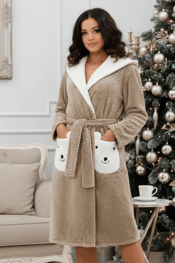 Цвет: бежевый Плюшевый халат из wellsoft подарит настоящее ощущение уюта и согреет Вас холодными вечерами. Кармашки декорированы забавными мордочками медвежат. Нежный и теплый халат может послужить отличным подарком на День рождения близкому человеку, коллеге в офис или для себя любимой. Можно использовать как домашний халат для дома, так и банный халат, выходя из бани или сауны. Нежная расцветка в ограниченном количестве, успейте сделать заказ! TM Serenada, женская одежда от производителя. Сделано в России на собственном производстве
