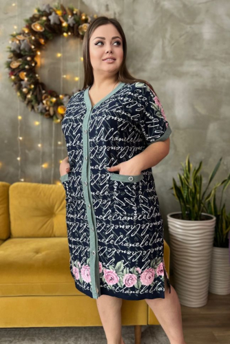 Ткань: кулирка; Состав: 100% хлопок; Сезонность: зима, весна, лето, осень; Рукав: короткий рукав; Стиль: домашний; Праздники: 8 марта; Застежка: пуговицы; Карман: с карманами; Производство: г. Иваново, швейное производство НАТАЛИ; Тип изделия: халаты; Цвет: зеленый