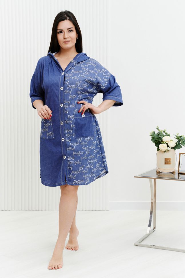 Ткань: кулирка; Состав: 100% хлопок; Сезонность: зима, весна, лето, осень; Рукав: рукав 3/4; Стиль: домашний; Праздники: 8 марта; Застежка: пуговицы; Карман: с карманами; Производство: г. Иваново, швейное производство НАТАЛИ; Тип изделия: халаты; Цвет: синий
