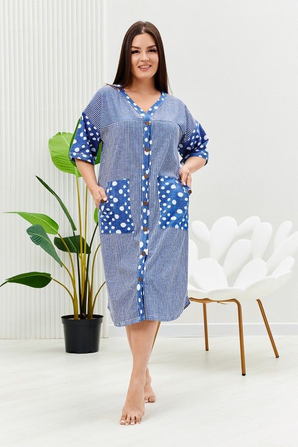 Халат женский 9205 полоса горох джинс