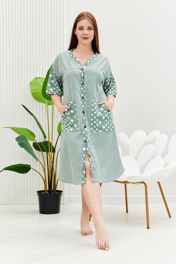 Халат женский 9205 полоса горох хаки