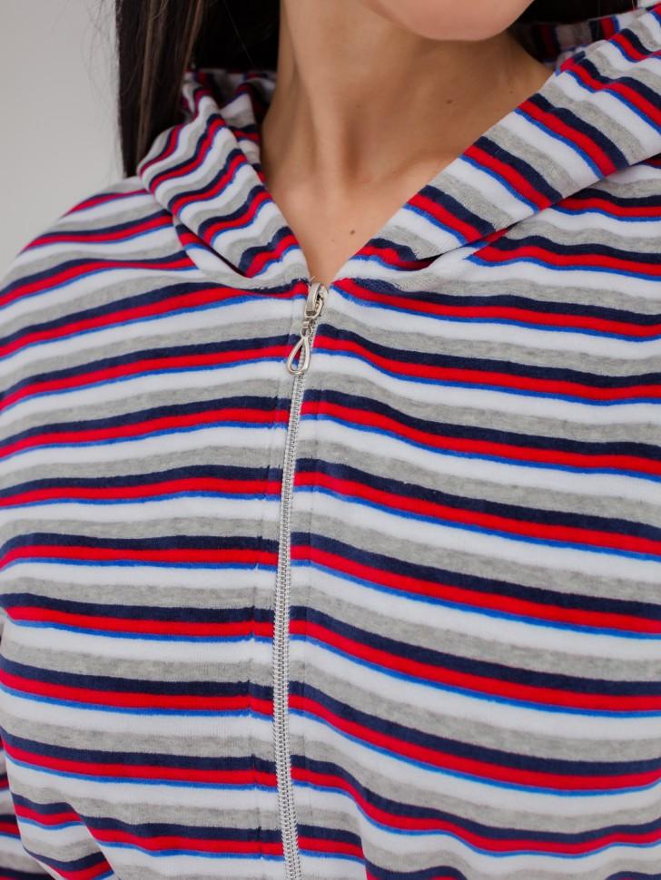 Красивый домашний халат с капюшоном на молнии , длинный рукав , манжеты c загибом . Состав: Велюр набивной 80% хлопок, 20% ПЭ. Размеры:42,44,46,48,50,52,54,56,58,60