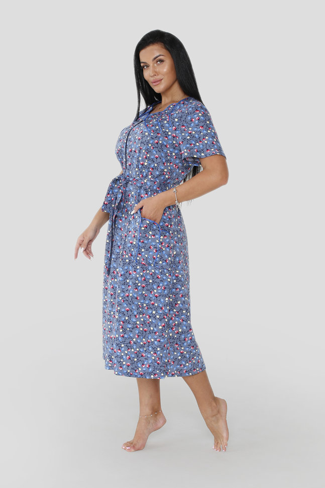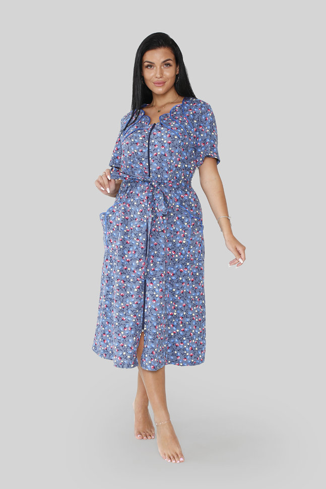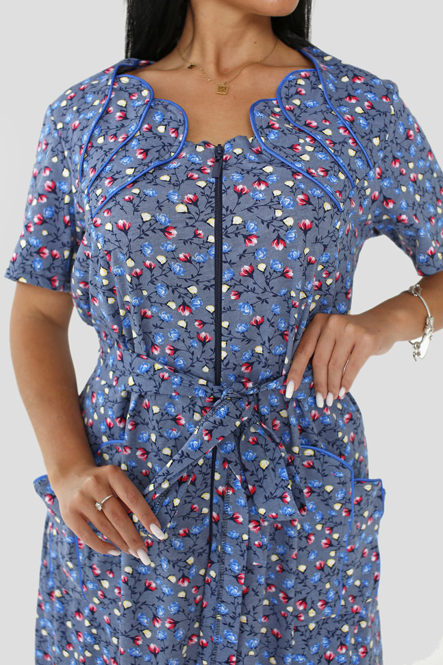Халат женский  на молнии с поясом  с оригинальной обработкой горловины и карманов.