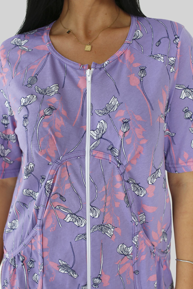 Халат женский полуприлегающего силуэта с рельефами и глубокими карманами, на молнии.
