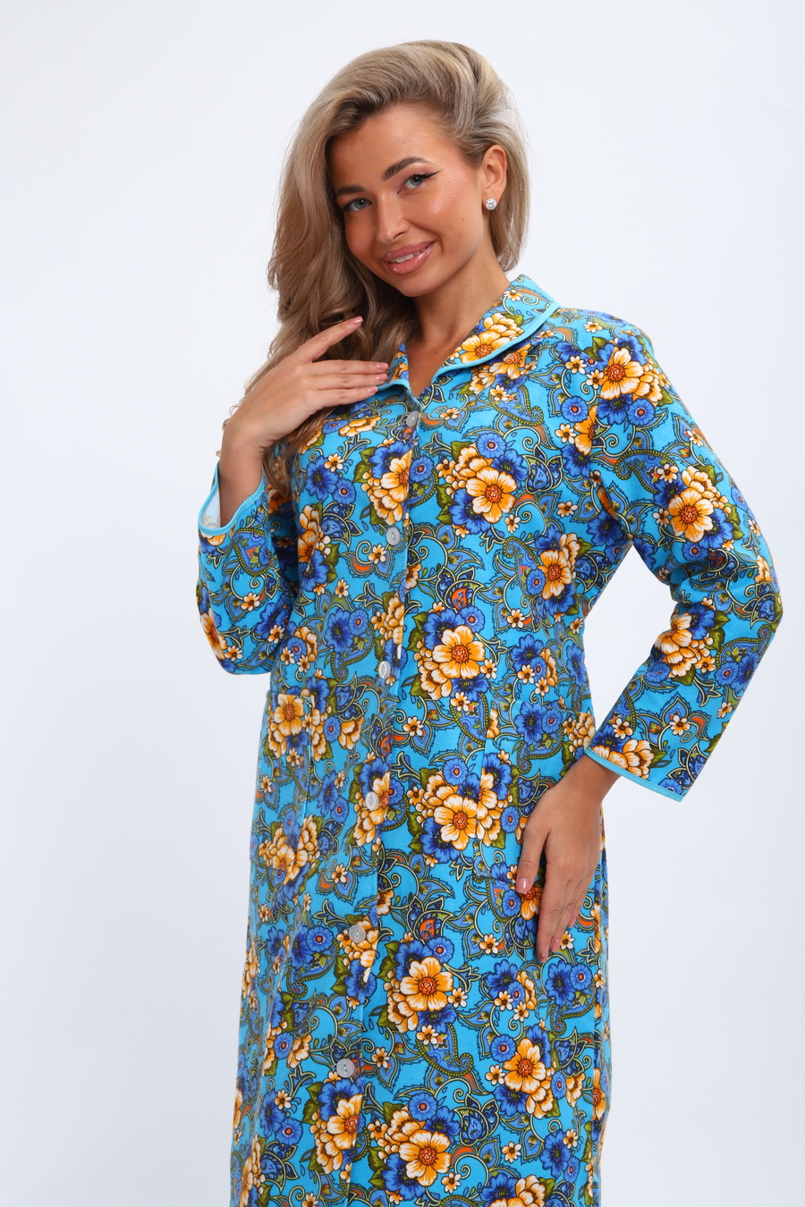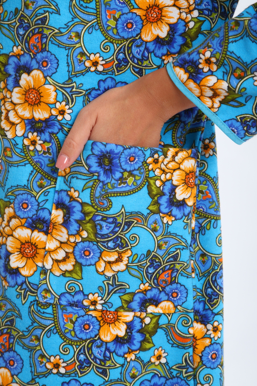 Халат женский из фланели Маша макси цветы