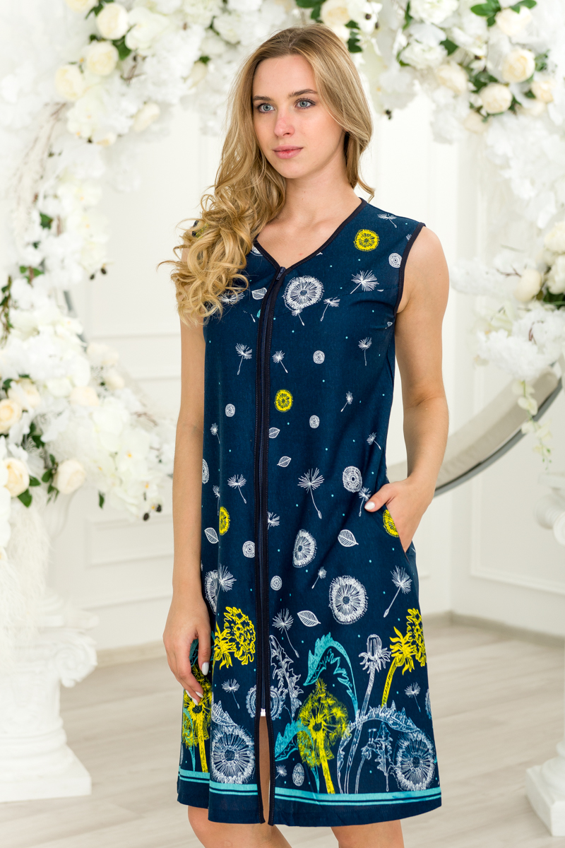 Халат женский из кулирки Лето темно-синий