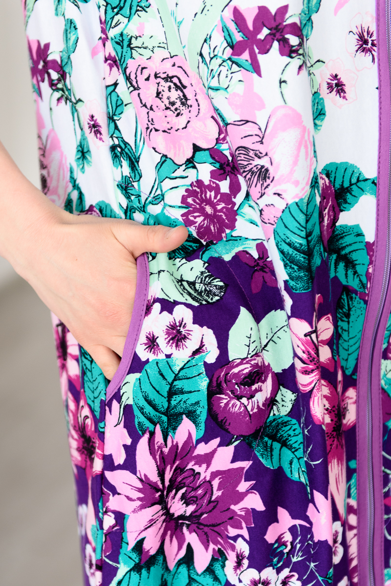 Халат женский с рукавом из кулирки Летний зной фиолетовый