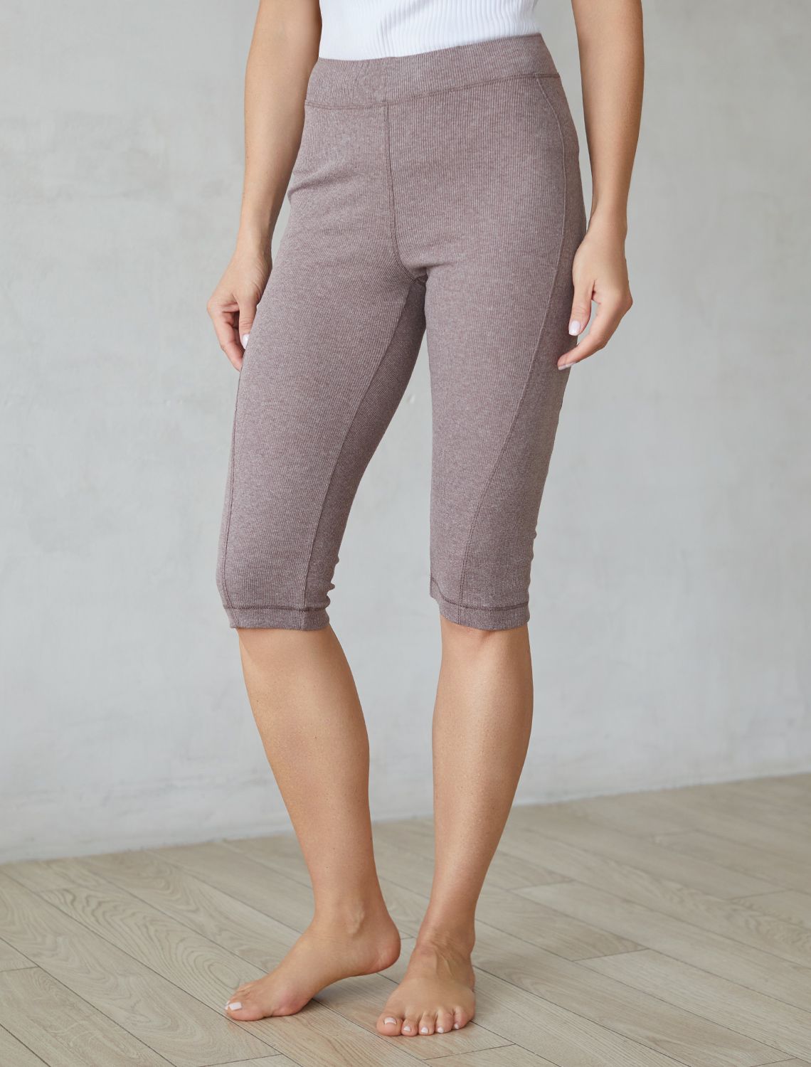 Капри актуального кофейного цвета изготовлены из премиального хлопка с добавлением эластана, обеспечивают удобную посадку и свободу движений. Благодаря высокому содержанию натуральных нитей они приятны к телу и подходят для повседневной носки. Ткань хорошо пропускает воздух, поддерживая оптимальный микроклимат кожи.