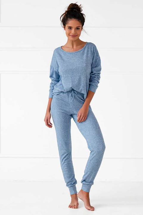 Однотонная пижама Constanza из лонгслива с длинными рукавами и зауженных брюк. На рукавах и брюках манжеты в тон. Брюки на завязках.
