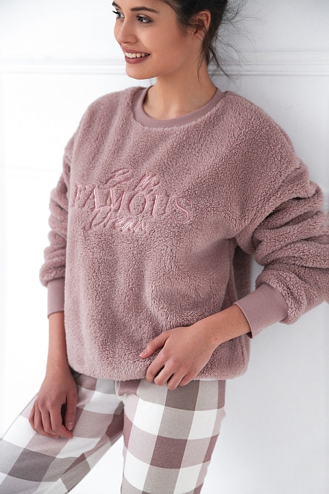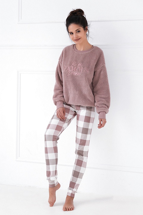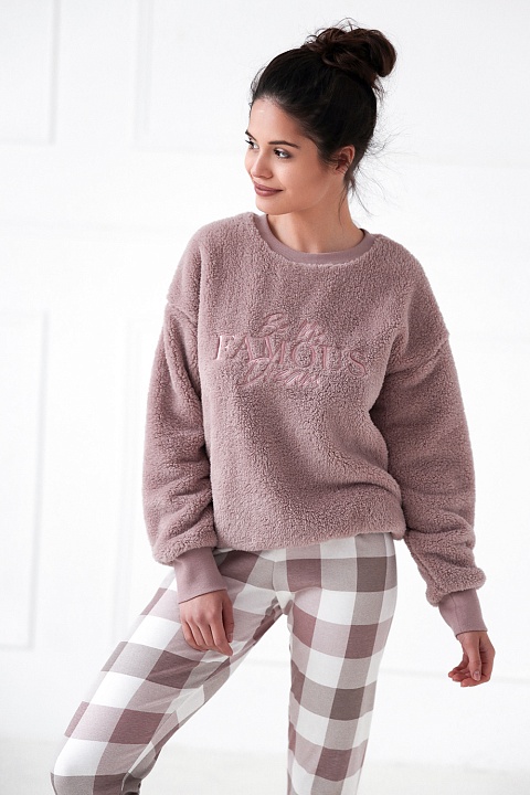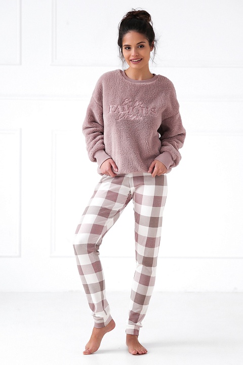 Теплая пижама Kaycee состоит из толстовки с надписью и зауженных брюк в крупную клетку. На рукавах манжеты. Отличный вариант для домашнего отдыха. Брюки: 100% хлопок.