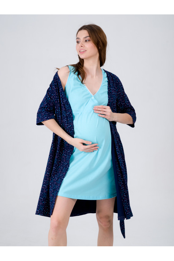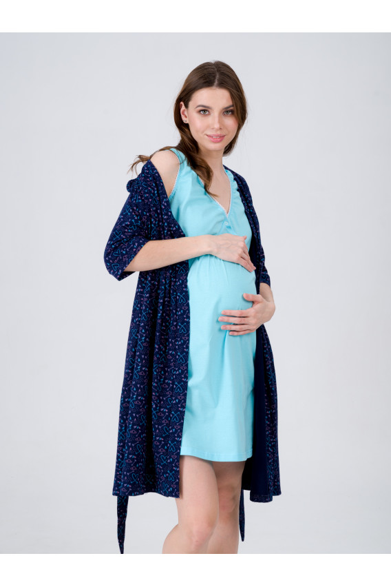 Описание: Комплект состоит из халата с рукавом 3/4, поясом и сорочки с секретом для кормления.