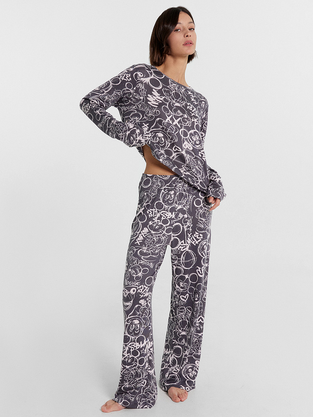 Серая домашняя пижама с граффити — это сочетание уюта и дерзкого современного стиля. Этот набор из лонгслива и брюк станет верным спутником ваших расслабленных вечеров и моментов отдыха.
