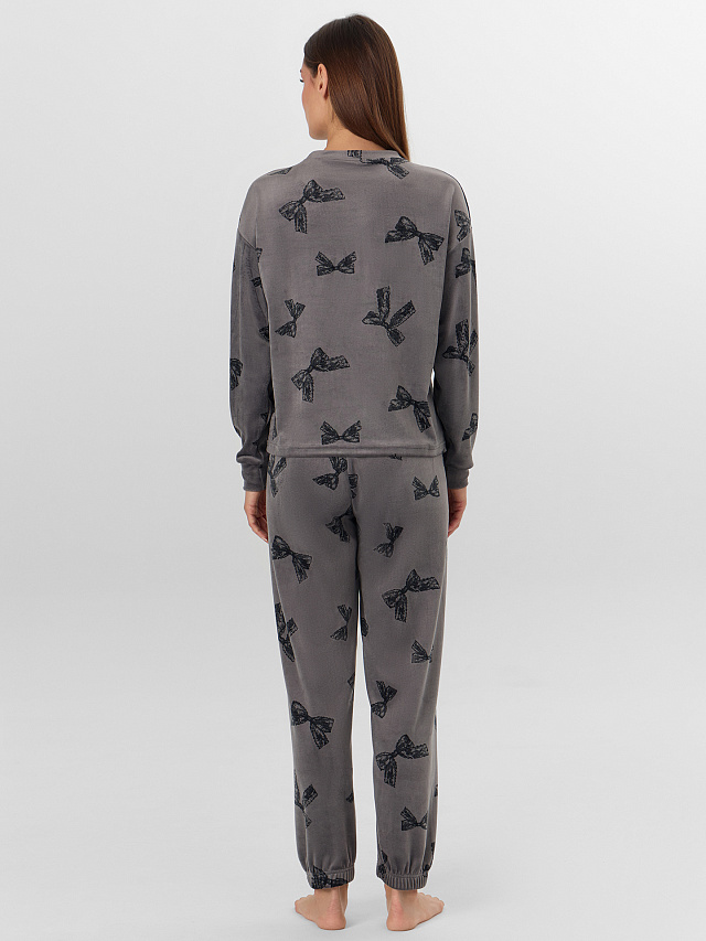 Серый велюровый комплект для женщин — ваш верный спутник для моментов полного расслабления и домашнего уюта. Набор состоит из джемпера прямого силуэта и свободных брюк, выполненных из мягкого велюра. Состав из полиэстера с добавлением эластана обеспечивает износостойкость, идеальное облегание и сохранение формы после многих стирок.