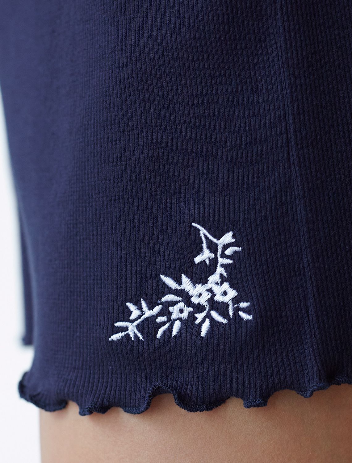 Короткие шорты на резинке с вышивкой из фактурного трикотажа в мелкий рубчик