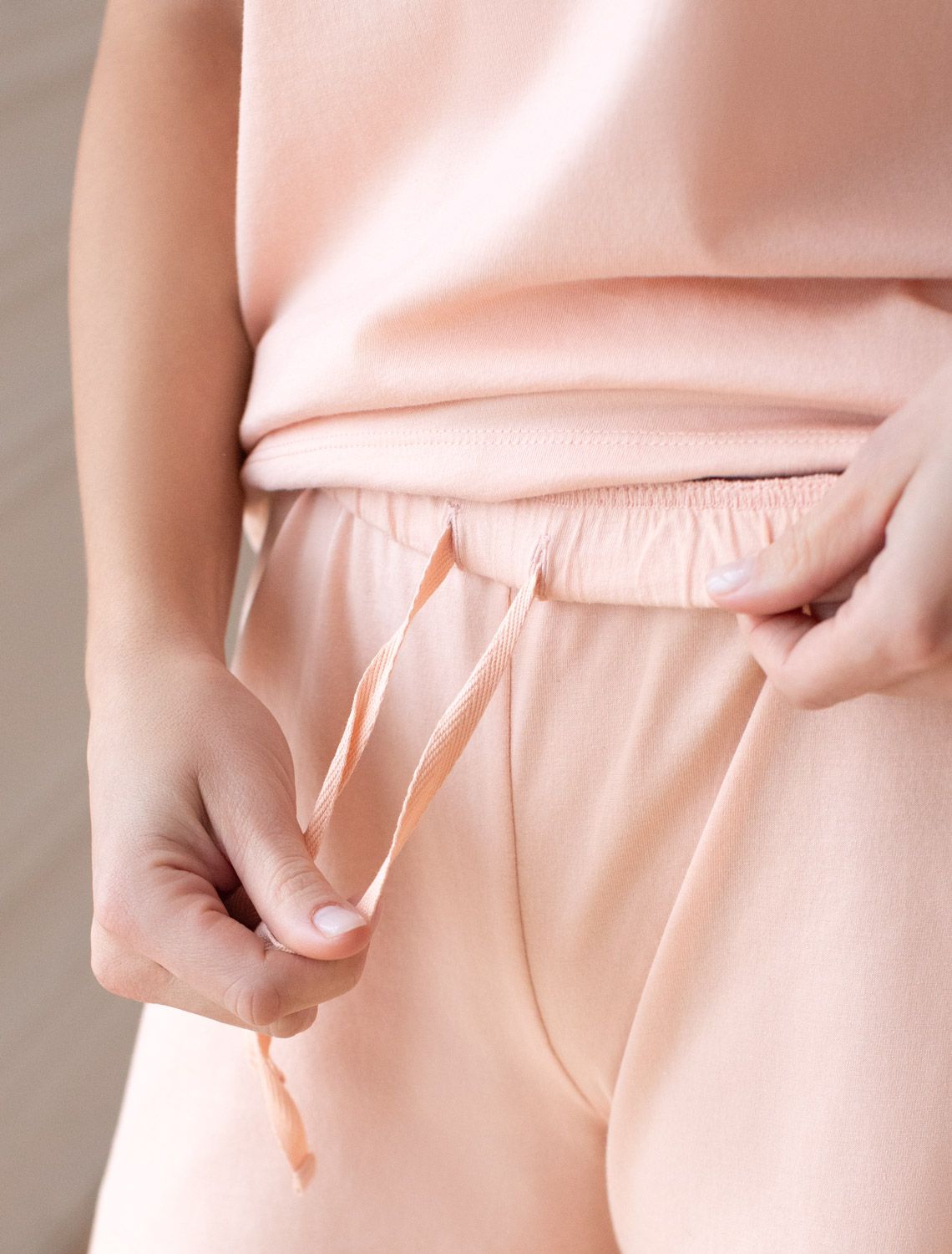 Короткие шорты пудрового цвета с поясом на резинке из эластичного хлопка сочетают стиль и практичность для отдыха и дома. Эластичный пояс на резинке мягко фиксирует шорты на фигуре, что делает их удобными для ежедневного ношения. Шорты подойдут на маленькие и большие размеры. Натуральная ткань обеспечивает дышащие качества, что особенно важно для комфортного ощущения в течение всего дня. Домашние пижамные шорты позволяют чувствовать себя уютно, даже во время сна или расслабления. Шортики украшены небольшой красивой вышивкой в виде логотипа бренда, что придает им премиальность. Такие базовые шорты прекрасно подходят для спокойного отдыха дома, занятий йогой или прогулок на свежем воздухе. Эластичные свойства материала позволяют наслаждаться свободой движений, а мягкая ткань не раздражает кожу, делая отдых еще приятнее.