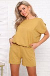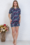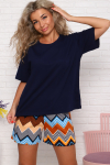 Яркий, стильный хлопковый костюм с фантазийным рисунком - отличный вариант для летних образов! Футболка прямого кроя. Шорты свободные, с боковыми разрезиками, пояс из широкой эластичной манжетки с резинкой и на шнурках.