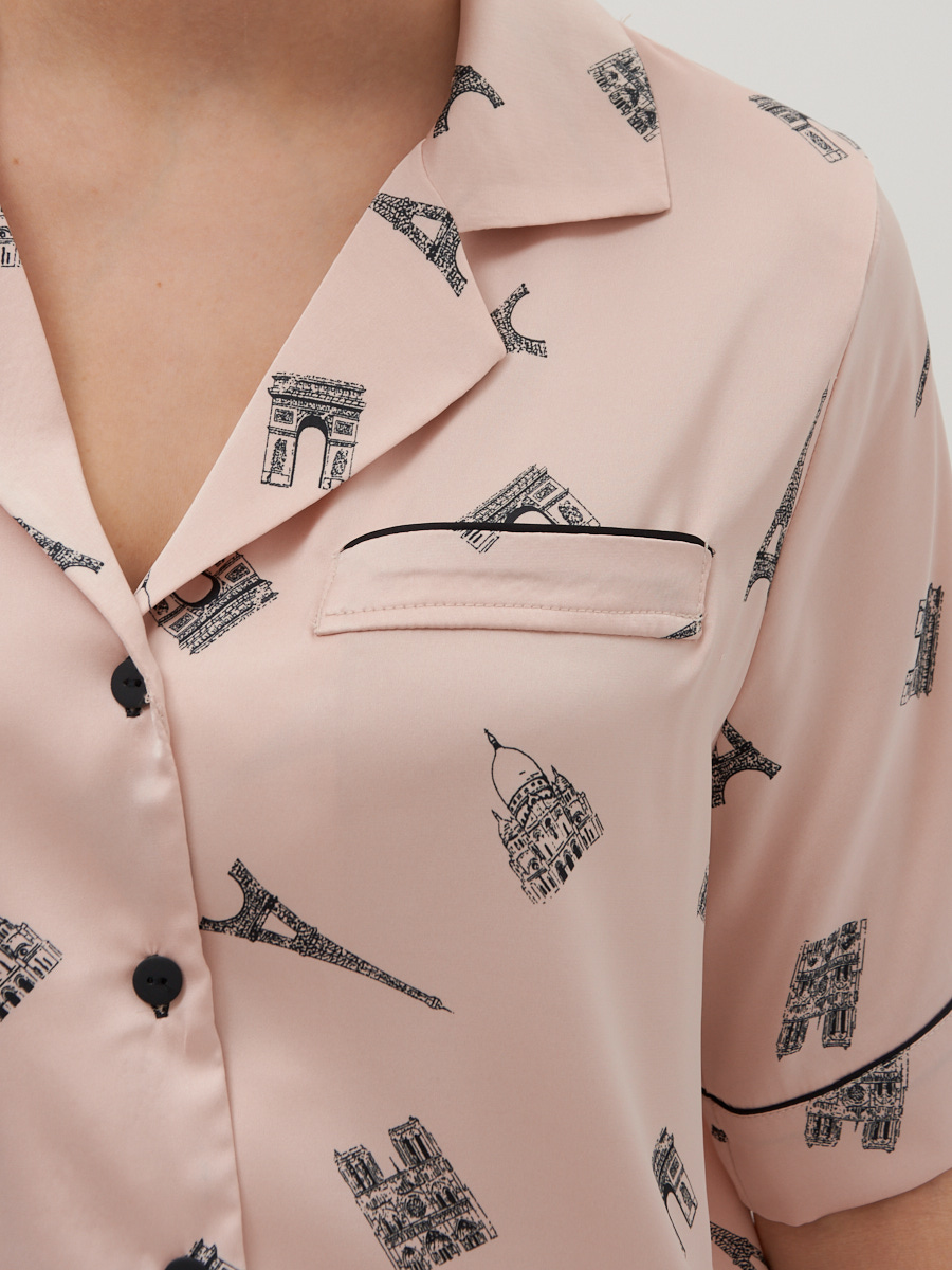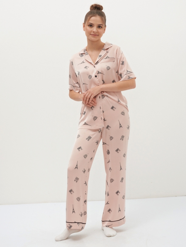 Костюм домашний из армани-шелка с брюками и рубашкой OD-687/686-3