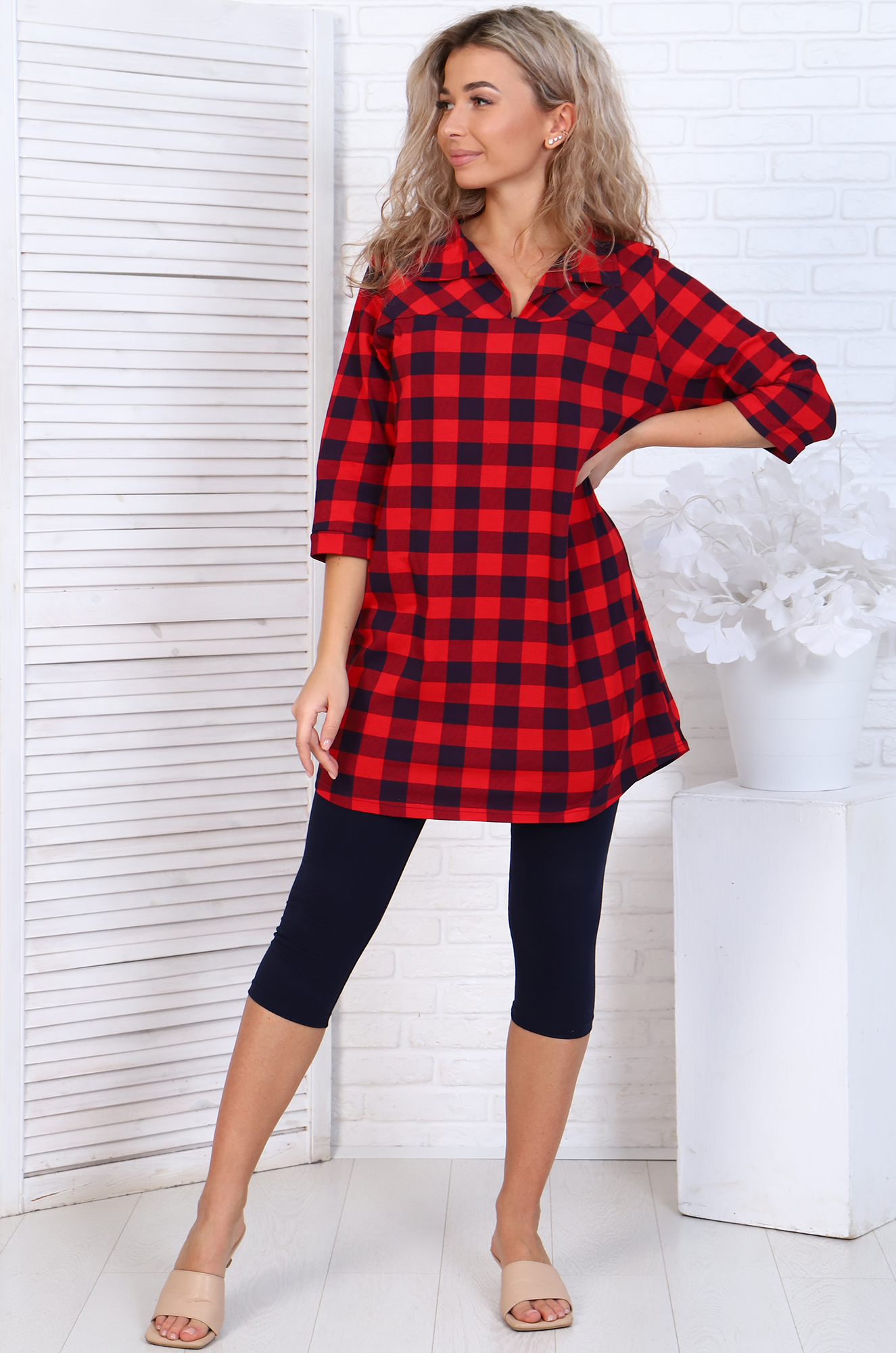 Удобный, стильный и невероятно женственный костюм для повседневного образа. Удлинённая туника-рубашка с отрезной кокеткой и отложным воротником. Модель с удлинённой спинкой, комфортный рукав 3/4. Бриджи облегающие, длина ниже колена, пояс на резинке.