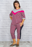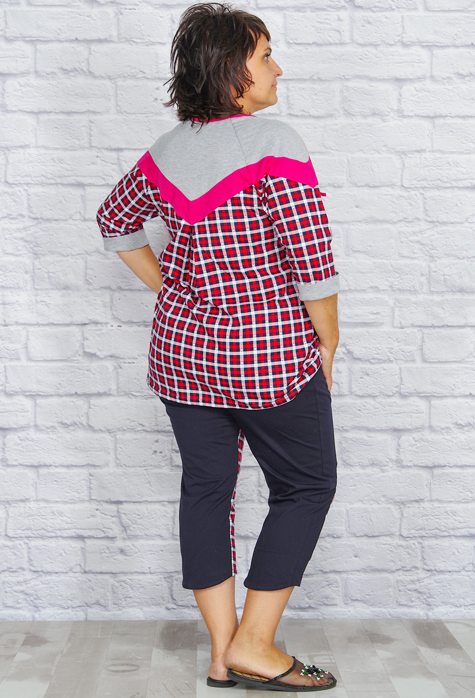 У бридж оригинально скомбинированы однотонная и клетчатая ткани, пояс на резинке и кокетка.
