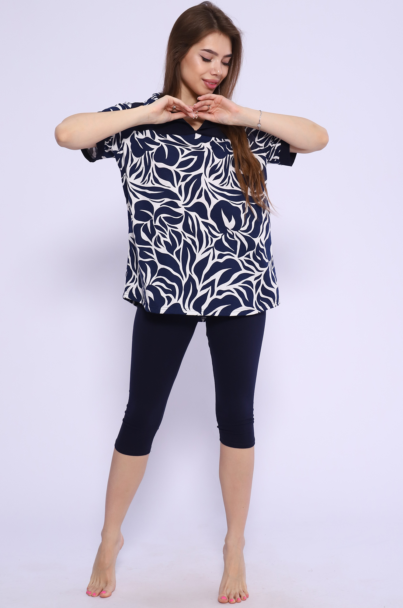 Удобный, стильный и невероятно женственный костюм для повседневного образа. Туника-рубашка с отрезной кокеткой и отложным воротником. Модель с удлинённой спинкой. Бриджи облегающие, с комфортной посадкой, длина ниже колена, пояс на резинке.