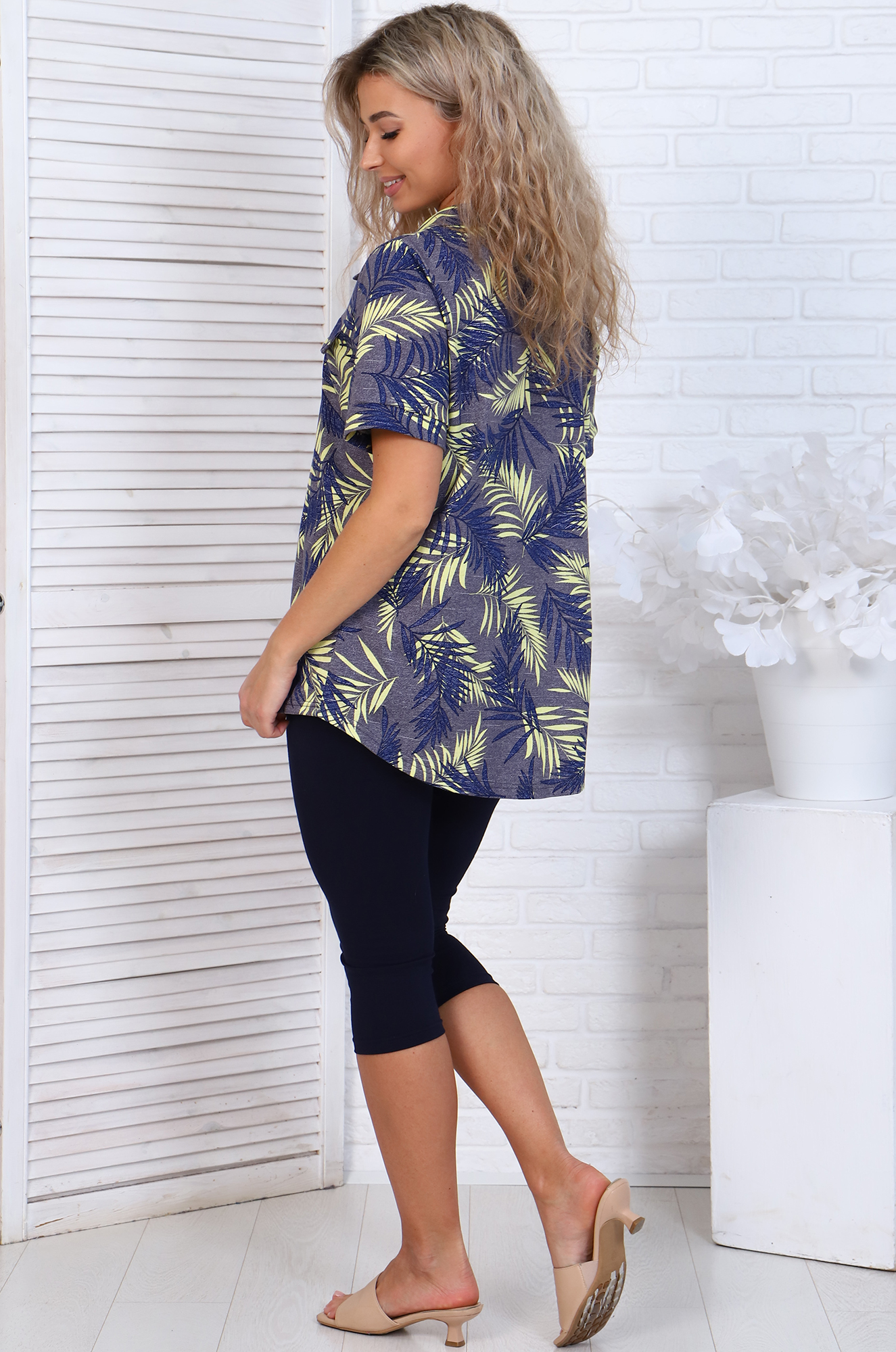 Удобный, стильный и невероятно женственный костюм для повседневного образа. Туника-рубашка с отрезной кокеткой и отложным воротником, на груди карманные клапаны. Модель с удлинённой спинкой. Бриджи облегающие, с комфортной посадкой, длина ниже колена, пояс на резинке.