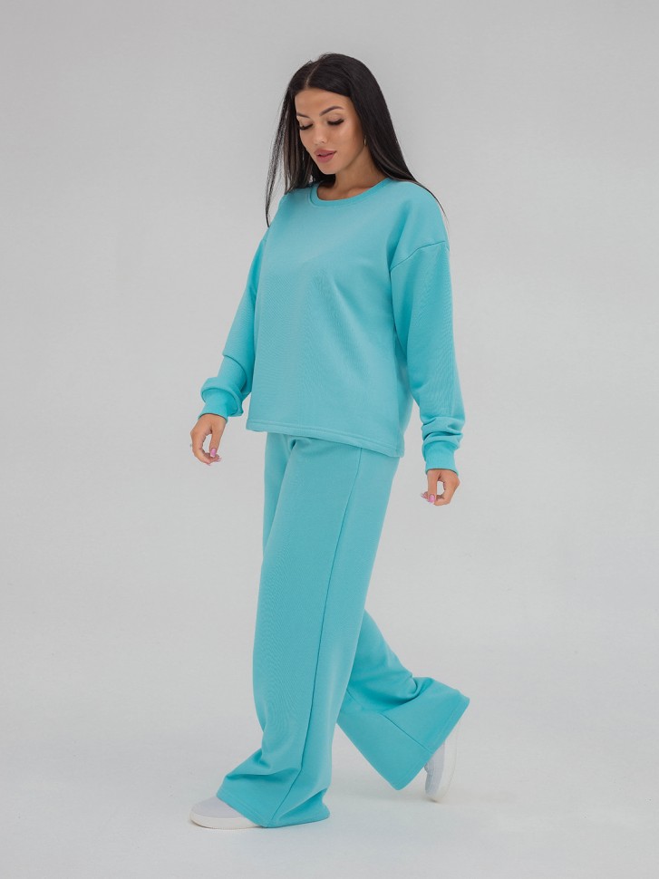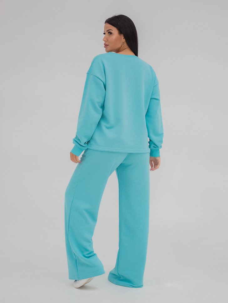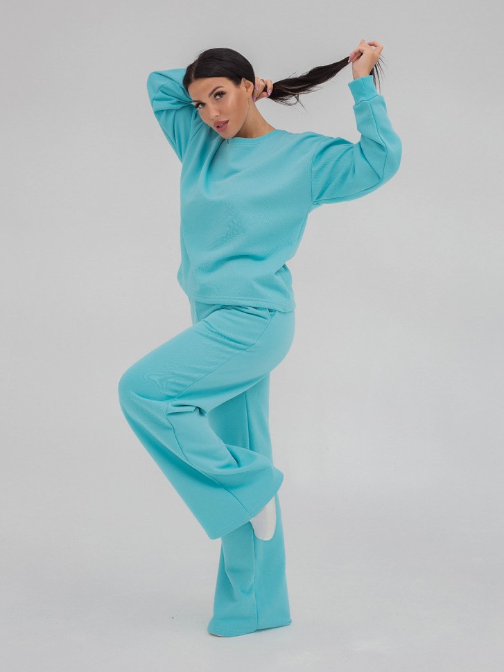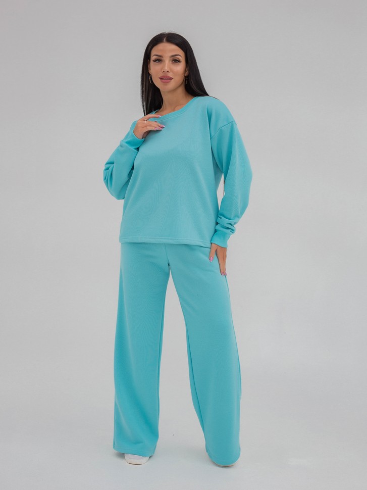 Женский   базовый  костюм:  верх -свитшот  , низ- брюки в стиле "палаццо" позволяет выглядеть эффектно и женственно даже в прохладную погоду, идеально подойдет для активного отдыха и поездок. Состав:  футер 3-нитка петля (80% хлопок, 20% ПЭ). Размеры:42-60