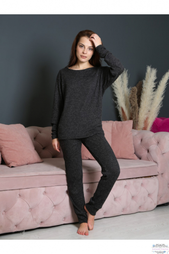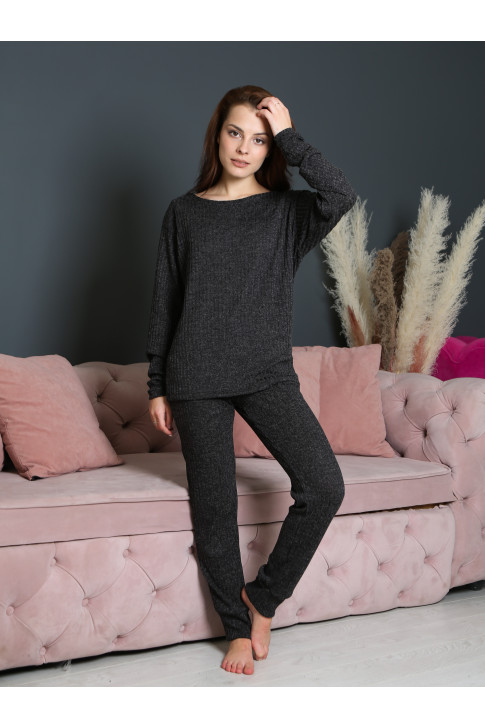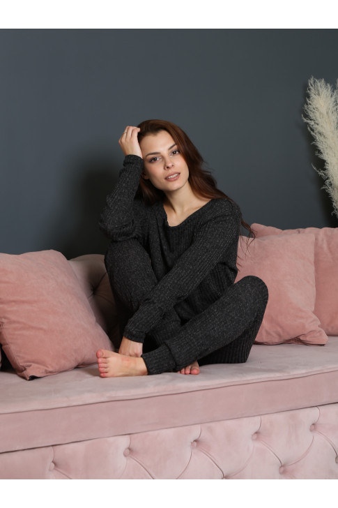 Очень комфортный и стильный костюм для дома. Свободная кофта с глубоким вырезом "лодочка". Брюки на манжетах, пояс -резинка.