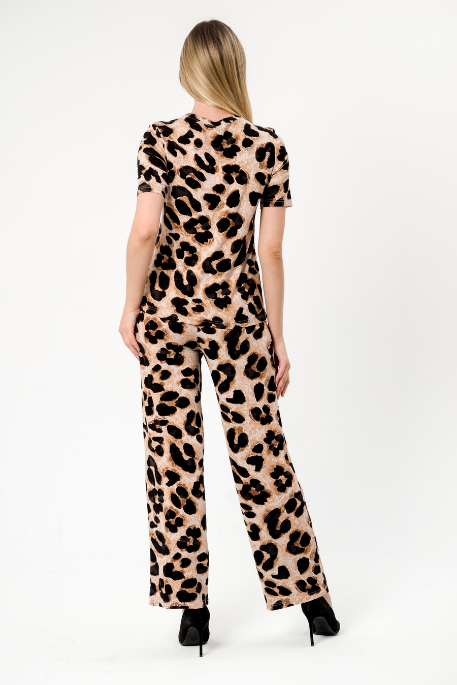 Костюм женский из футболки и брюк из вискозы Леопард