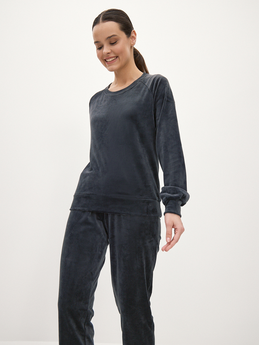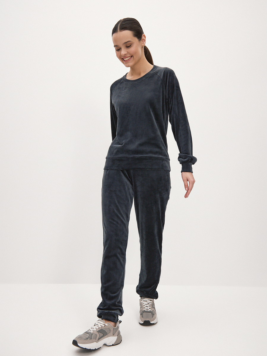 Костюм женский из свитшота и брюк из стрейч велюра Люкс графит