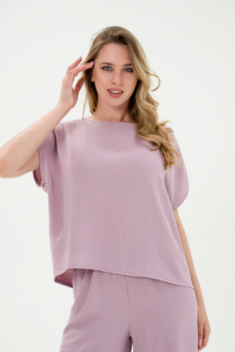 Костюм женский из туники и брюк палаццо из жатки Диана пыльная роза