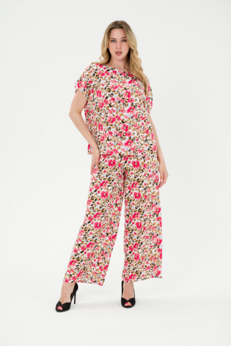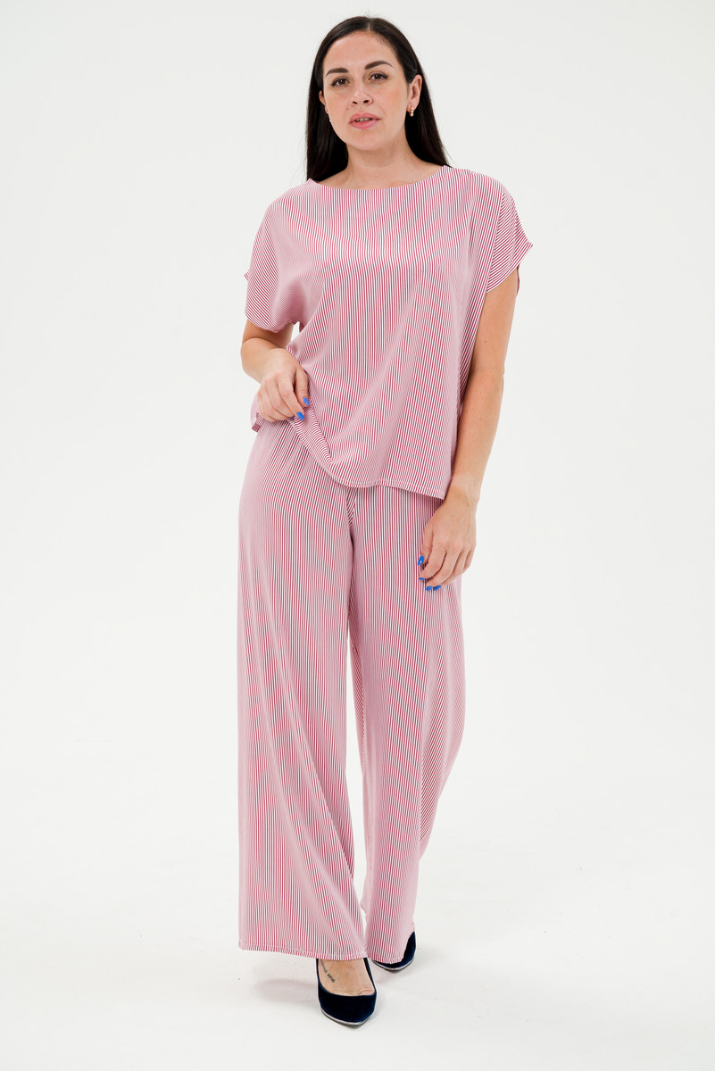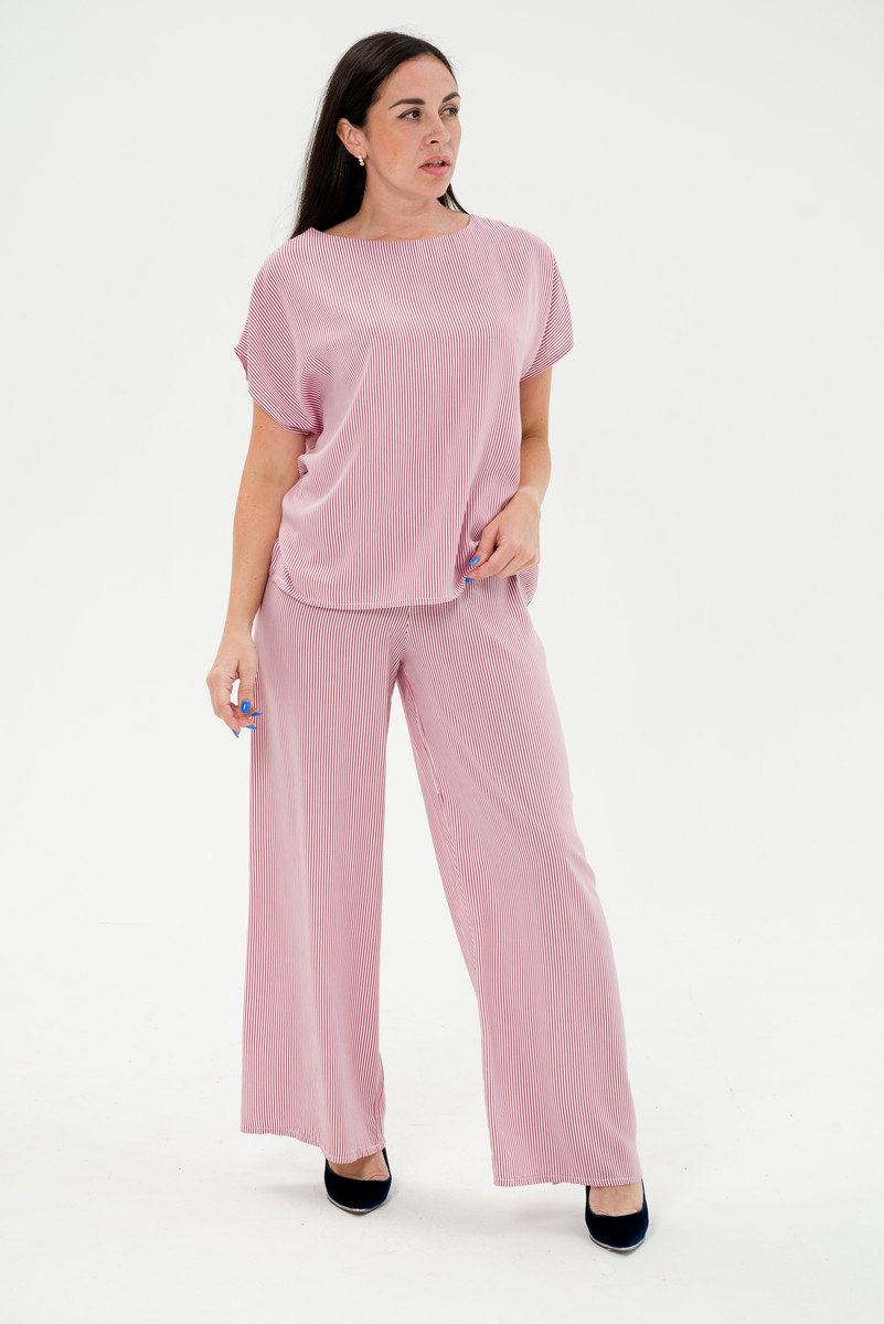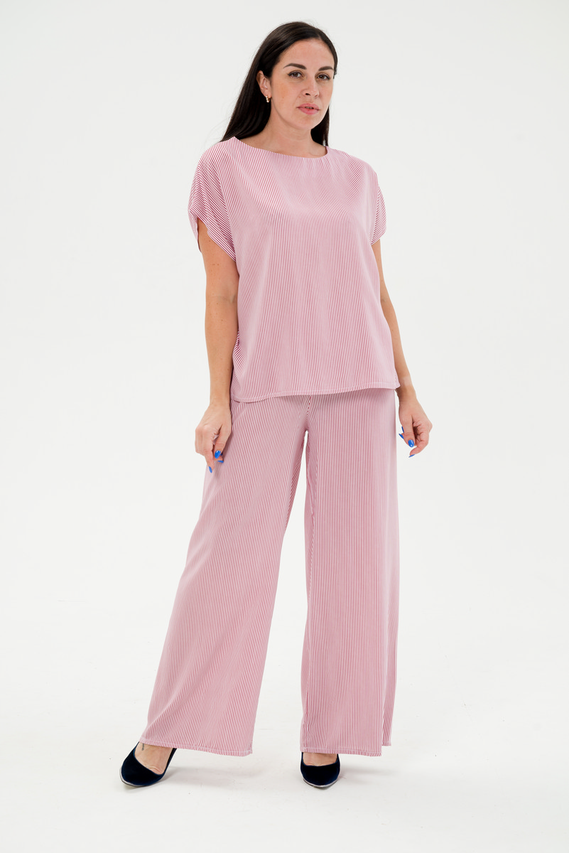 Костюм женский из туники и брюк штапель Диана красная полоса