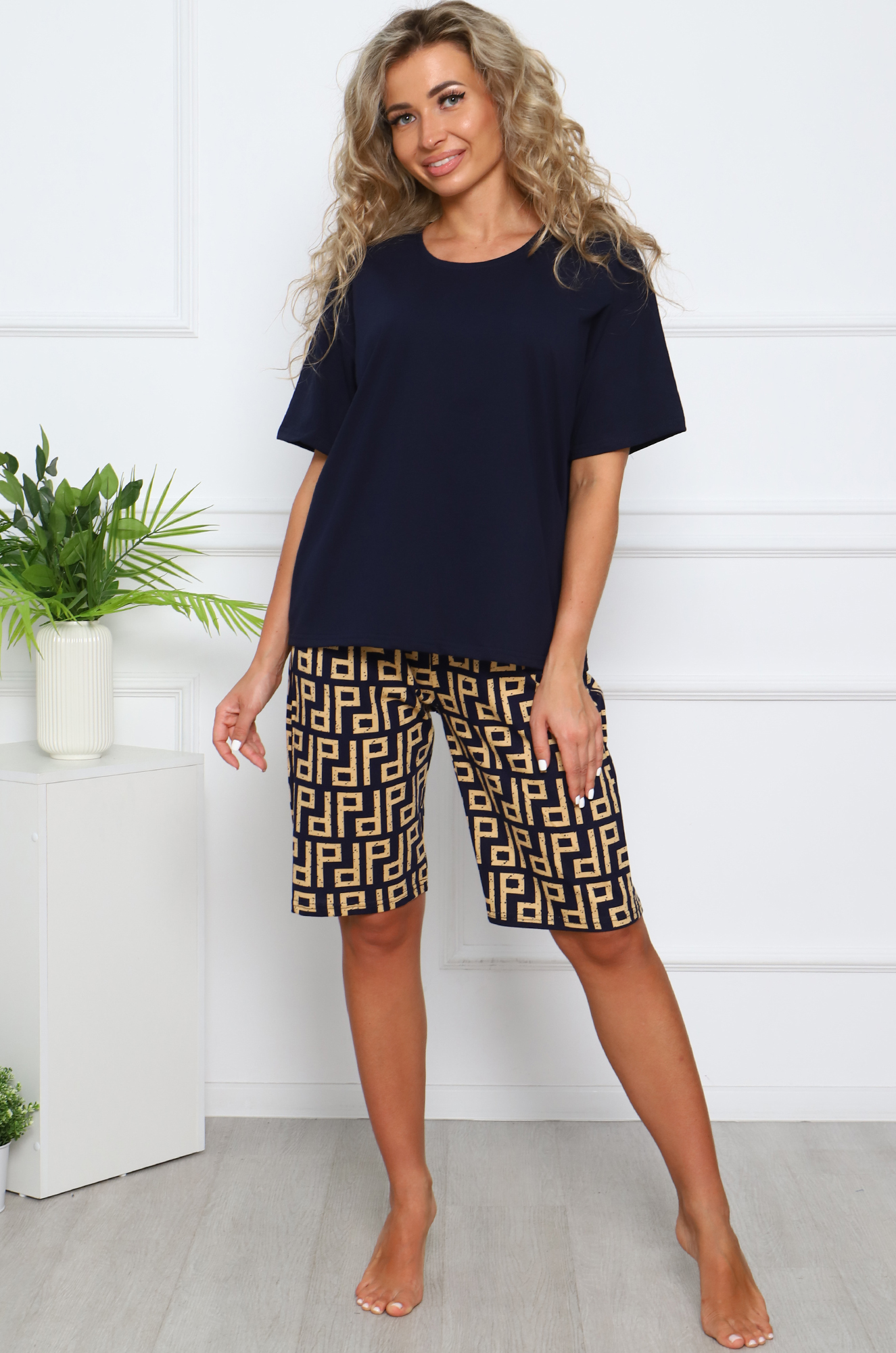 Хлопковый костюм для дома и отдыха. Футболка однотонная в стиле оверсайз, со спущенным плечом. Шорты-бермуды комфортной длины, пояс на широкой резинке, прострочен на спец. машине, удобные боковые карманы.