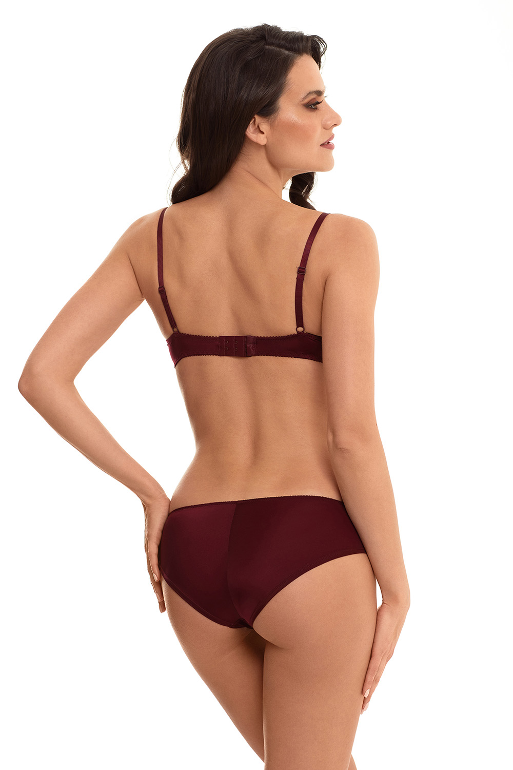 Трусики красивого бордового цвета с винным оттенком из ткани-микрофибры "Lauma Fabrics" SIA (Латвия). Классическая посадка на бедрах. Трусики бразилиана-современная модель женских трусов, достаточно прикрывающая ягодицы и не скрывающая красивый силуэт фигуры. Трусики декорированы кружевной вышивкой на сетке INTER-SPITZEN(Швейцария) такого же оттенка. Соблазнительная и привлекательная модель.