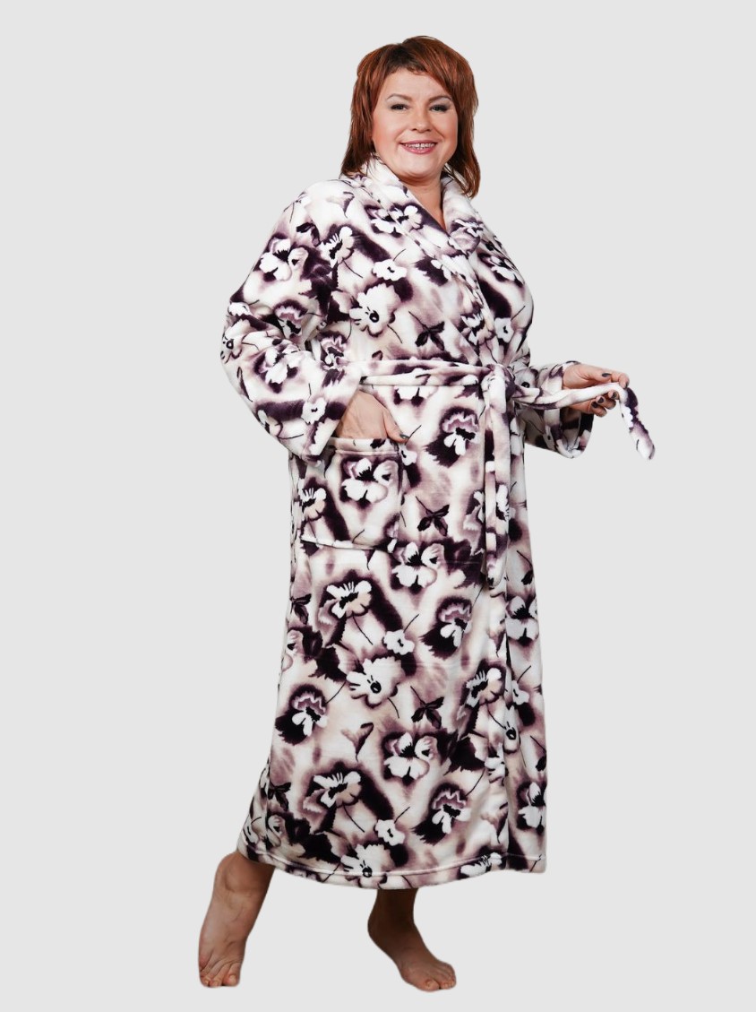 Женский домашний халат из мягкого плюшевого материала, подарит Вам незабываемый комфорт. Халат с длинными рукавами и накладными карманами спереди. Приятная ткань дарит настоящий комфорт, настраивая вас на позитивные мысли и полное расслабление.