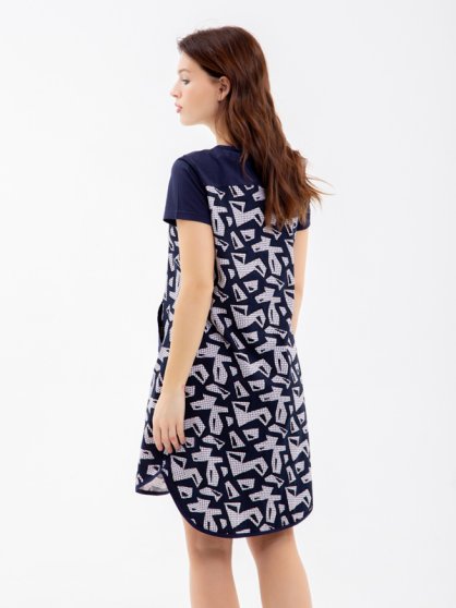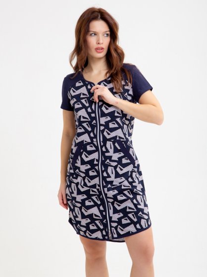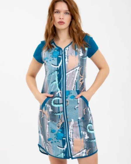 Оптовая продажа. Халат женский из хлопка, с короткими рукавами, боковыми карманами, центральной застежкой на молнию, задняя деталь удлиненная.