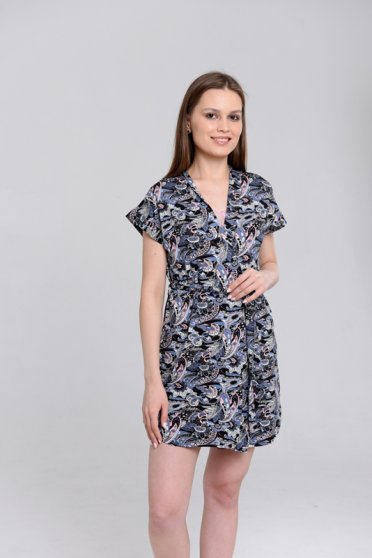 Оптовая продажа. Комплект домашний: Халат, топ и шорты. Халат с коротким рукавом на запахе, топ с широкой кружевной вставкой по декольте, тонкие бретели. Шорты принтованные.