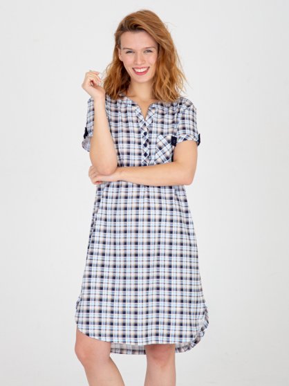 Оптовая продажа. Туника с короткими рукавами, V-образный вырез горловины с полочкой и пуговицами, фигурный низ изделия.