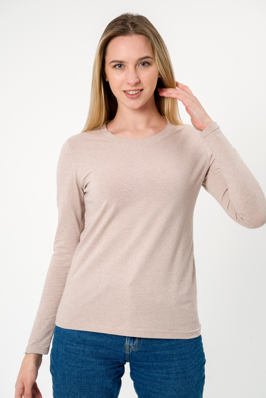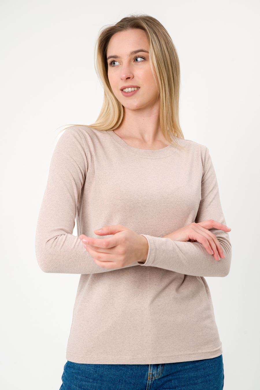 Лонгслив женский из кулирки с лайкрой бежевый меланж