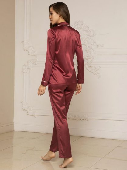 Оптовая продажа. Пижама женская шелковая. Рубашка с длинными рукавами, на пуговицах, "английский" воротник, на левой части изделия накладной карман и вышивка. Брюки на мягкой резинке с завязками.